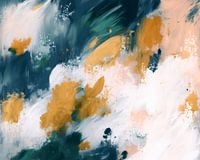 Modern abstract in okergeel, blauw, wit en roze. Woonstijl modern, abstract en design.