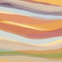 Collage van kleurrijke penseelstreken in pastel- en neonkleuren.