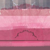 Collages van texturen, lijnen en vormen in taupe, roze, paars en grijs.