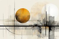 Modern abstract met gouden accent. Moderne vormen en lijnen vormen samen een dynamisch abstract werk. Een echte blikvanger!