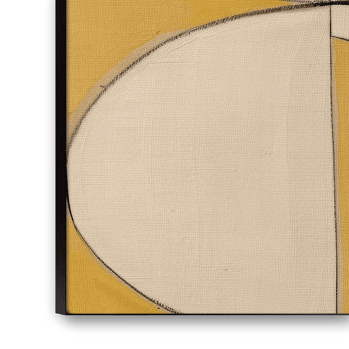 Modern abstract minimalisme in geel, zwart en beige met een retro uitstraling. Vintage. Kies zelf het formaat en materiaal bij dit werk en maak er een echte blikvanger van voor jouw interieur.