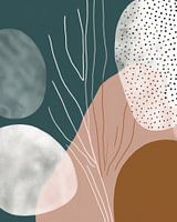 Modern abstract, organische vormen. In groen, roze, bruin, wit en zwart. Kies zelf het formaat en materiaal voor dit werk.