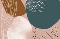 Modern abstract, organische vormen. In groen, roze, bruin, wit en zwart. Kies zelf het formaat en materiaal voor dit werk.