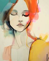 Modern abstract portret, aquarel. Een bijzonder portret in zorgvuldig op elkaar afgestemde kleuren. Kies zelf het formaat en materiaal bij dit werk en maak het passend voor jouw interieur.