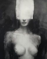 Modern abstract portret, digital art, houtskool. Contemporary art, voor de liefhebber, een bijzonder portret in zwart-wit. Vrouwelijk naakt. Dit is een echte blikvanger!