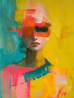 Modern abstract portret in felle neon kleuren, contemporary art. Kies zelf het formaat en materiaal bij dit werk en maak er een echte blikvanger van voor jouw interieur.