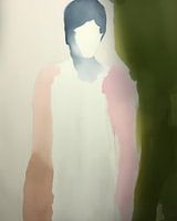 Modern abstract portret in pastelkleuren met contrasterend groen. Een bijzondere blikvanger voor je interieur! Kies zelf het formaat en materiaal bij dit werk en maak het helemaal naar wens.