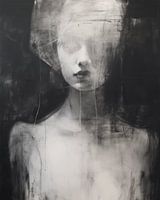 Modern abstract portret, digital art, houtskool. Contemporary art, voor de liefhebber, een bijzonder portret in zwart-wit. Vrouwelijk naakt. Dit is een echte blikvanger!
