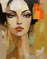 Modern abstract portret van een vrouw in aardetinten met een vleugje oranje. Dit is een echte blikvanger voor je interieur. Kies zelf het formaat en materiaal en maak dit werk helemaal naar jouw wens.