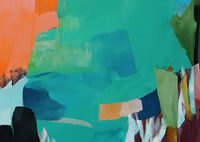 Modern abstract schilderij "Koraal". Dit is een werk uit een serie van vier. De werken komen individueel goed tot hun recht maar zijn ook mooi met elkaar te combineren in dezelfde ruimte. Om de andere werken te zien typ je in de zoekbalk: Modern abstract schilderij "Koraal". Kleurrijk, voornamelijk groen en blauwtinten, aangevuld met contrasterende kleuren.