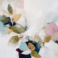 Dit abstracte schilderij combineert zachte lagen met subtiele structuren en gouden accenten. Organische vormen en speelse lijnen vloeien samen tot een harmonieus geheel dat rust en verfijning uitstraalt. De combinatie van frisse tinten, transparante lagen en sprankelende details maakt dit werk een echte blikvanger in een modern interieur. Perfect om sfeer, elegantie en een vleugje luxe toe te voegen aan je woonkamer, slaapkamer of werkruimte.