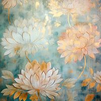 Prachtige, stijlvolle aquarel van bloemen in bloei in warme waterverf tinten.