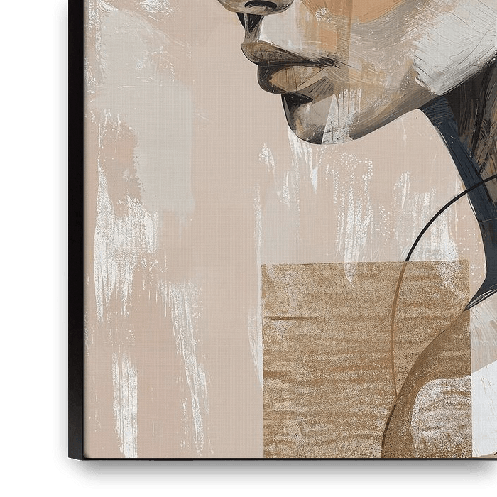 Modern chic en abstract portret in aardetinten. Kies zelf het formaat en materiaal bij dit werk en maak er een echte blikvanger van voor jouw interieur.