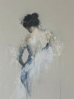 Modern chic portret van een jonge vrouw op haar rug gezien. Deels abstract, contemporary art. Een bijzondere blikvanger voor je interieur!