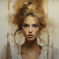 Modern digital art portret in aardetinten. Kies zelf de afmeting en het materiaal en maak dit werk helemaal passend in jouw interieur!