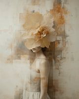 Modern en abstract "Flower girl". Een bijzonder portret in zachte kleuren met een romantische en poëtische uitstraling. Ondanks dat het vervaagd is, zijn nog goed de contouren van een jonge vrouw met bloemen herkenbaar. Aardetinten.