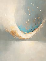 Modern en abstract, Japandi stijl. Een moderne vorm, opgebouwd uit geschakeerde kleuren, van blauw naar goud. Een bijzondere blikvanger voor je interieur!