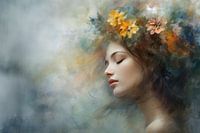 Modern en abstract bloemrijk portret. Ga jij voor deze blikvanger? Kies dan zelf het formaat en materiaal voor dit werk en maak het helemaal naar wens.