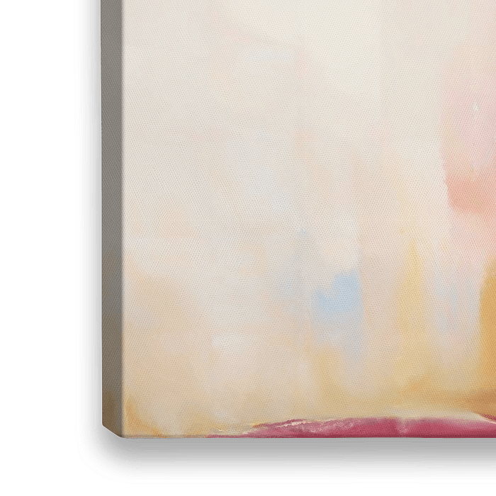 Modern en abstract contemporary art. Minimalistisch en toch kleurrijk schilderij in wit, roze, blauw, geel en zwart. Neon kleuren.