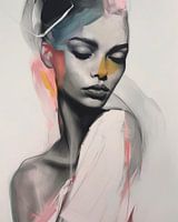 Modern en abstract geïllustreerd portret. Een echte blikvanger voor je muur! Met dit werk haal je echt iets bijzonders in huis. Kies zelf de afmetingen en het materiaal.