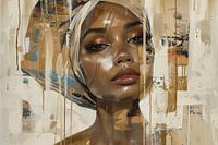 Modern en abstract portret in aardetinten. Bijzonder portret van een jonge Afrikaanse vrouw. Kies zelf het formaat en materiaal bij dit werk en maak het helemaal passend voor jouw interieur.