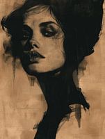 Modern en abstract portret in aardetinten, bruin en zwart. Kies zelf het formaat en materiaal bij dit werk en maak er een echte blikvanger van voor jouw interieur. Contemporary art.