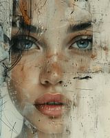 Modern en abstract portret in mixed media stijl. Dit is een bijzondere blikvanger waar je naar blijft kijken. Kies zelf het formaat en materiaal bij dit werk en maak haar helemaal passend voor jouw interieur.
