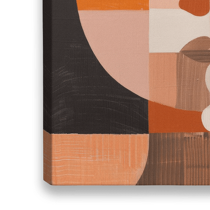 Modern en abstract portret in retro kleuren. Bijzonder abstract portret in bruin, oranje en roze. Kies zelf het formaat en materiaal bij deze blikvanger.