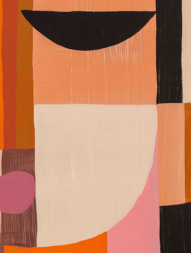 Modern en abstract portret in retro kleuren. Bijzonder abstract portret in bruin, oranje en roze. Kies zelf het formaat en materiaal bij deze blikvanger.