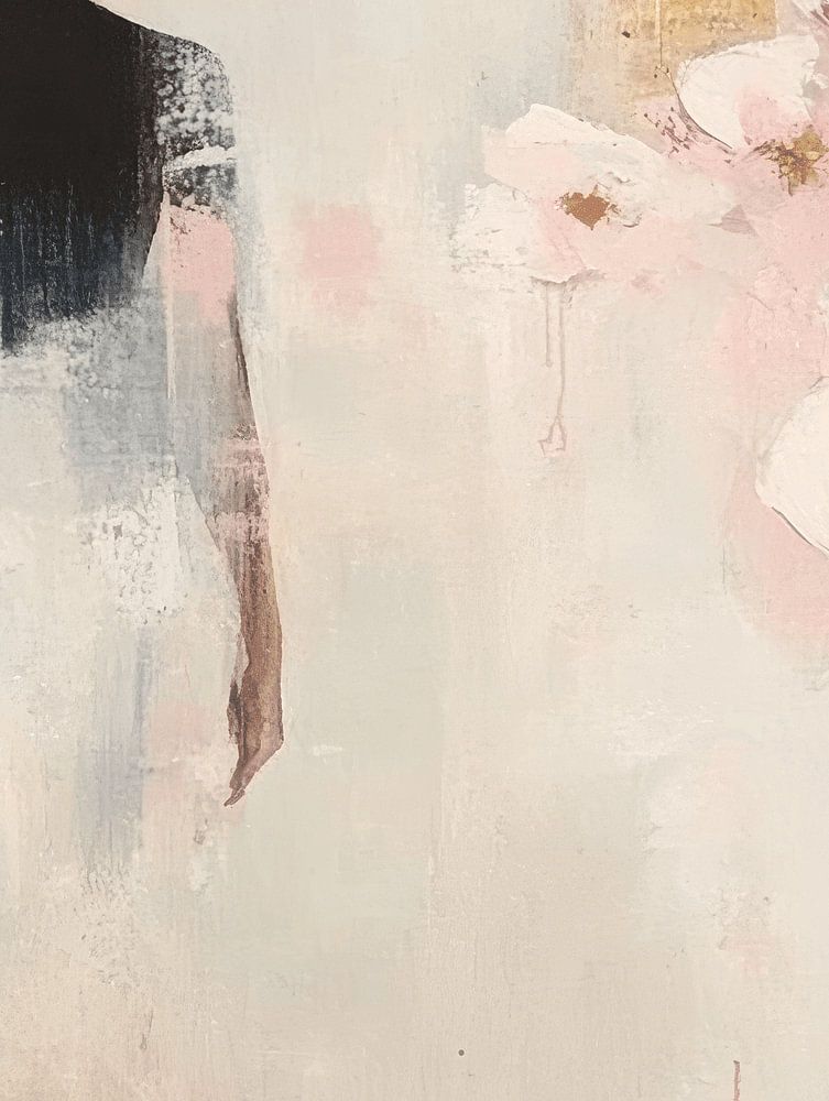 Modern en abstract portret in roze en goud. Een bijzondere blikvanger voor je interieur! Kies zelf het formaat en materiaal bij dit werk en maak het helemaal naar wens.