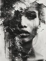 Modern en abstract portret in zwart-wit. Een bijzondere blikvanger voor je interieur! Kies zelf het formaat en materiaal bij dit werk en maak het helemaal naar wens.