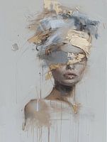 Modern en abstract portret met een vleugje goud. In wit, beige en goud met een modern chique uitstraling. Kies zelf het formaat en materiaal bij dit werk en maak het helemaal naar wens.