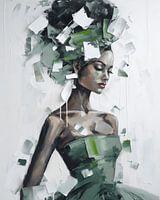 Modern en abstract portret in zwart, grijs, bruin, wit en groen. Kies zelf het formaat en materiaal bij dit werk en maak er een echte blikvanger van voor jouw interieur.