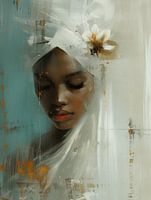 Modern en abstract portret in wit, mintgroen en een vleugje goud. Kies zelf het formaat en materiaal voor dit werk en maak het passend voor jouw interieur.