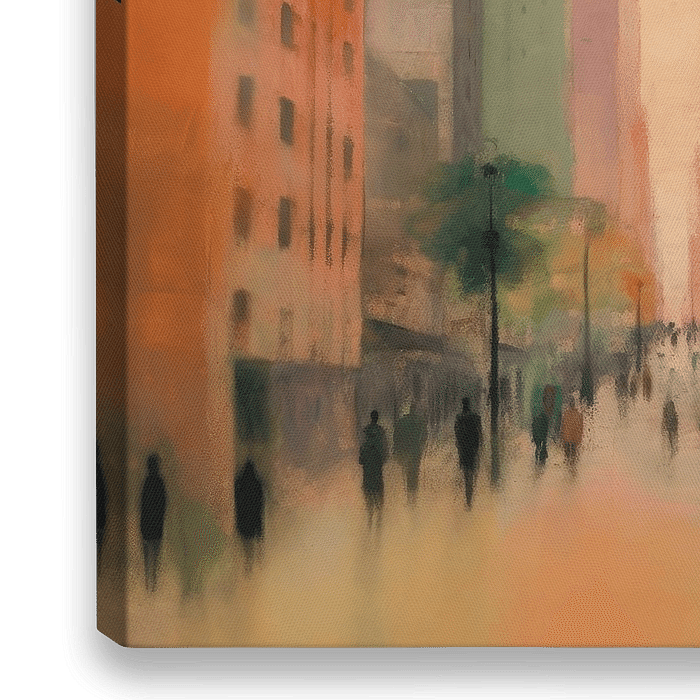 Modern en abstract straatleven in warme kleuren. Kies zelf het formaat en materiaal bij dit werk en maak het helemaal passend voor jouw interieur.