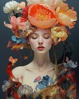 Modern en kleurrijk portret "Flower girl". Kies zelf het formaat en het materiaal waarop je dit werk af laat drukken. Dit is een echte blikvanger aan je muur!