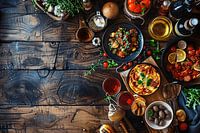 Geniet van een heerlijk diner met vrienden of familie aan deze modern gedekte tafel. De eenvoudige, monochrome kleuren en het klassieke servies zorgen voor een tijdloze uitstraling die perfect is voor elke gelegenheid.