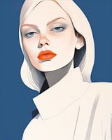 Modern geïllustreerd portret in zwart, wit, blauw en rood. Kies zelf het formaat en afdrukmateriaal voor dit werk. Hiermee haal je iets bijzonders in huis.