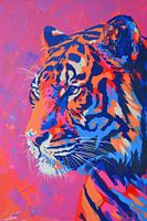 Dit opvallende popart schilderij van een tijger brengt direct energie en kleur in elke ruimte. De combinatie van heldere tinten zoals roze, blauw, en oranje zorgt voor een dynamische uitstraling die niet onopgemerkt blijft. Het krachtige silhouet van de tijger komt tot leven door de speelse en gedurfde kleurcontrasten. Dit ontwerp is perfect voor wie een moderne en opvallende toevoeging zoekt aan het interieur, ideaal voor een kantoor of slaapkamer waar levendige kleuren en een vleugje kunstzinnigheid gewenst zijn. Het schilderij trekt de aandacht en fungeert als een uniek statement-stuk in elke omgeving. Voeg dit moderne kunstwerk toe aan je collectie en creëer een ruimte vol expressie en karakter.