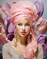 Koop dit portret Modern meisje met de parel IX Johannes Vermeer tulpen van René van den Berg op canvas, aluminium dibond, (ingelijste) fotoprint, behang en ArtFrame, op maat geprint in Fine-Art kwaliteit.