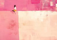 Modern met bewoner - Abstract schilderij: Kunst met mensje.