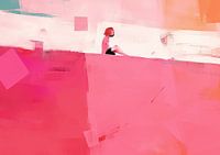 Modern met mensje - Abstract schilderij: Kunst met bewoner.