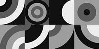 Retro vintage Bauhaus-stijl kunstwerk met geometrische vormen in zwart-wit. Minimalistische moderne kunst. Jaren '70, Cirkelvormen, geometrisch, abstract, eenvoudig leven