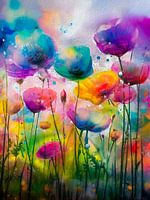 Koop dit bloemen kunstwerk Modern mixed media: Kleurrijk klaprozenveld van Studio Pieternel op canvas, aluminium dibond, (ingelijste) fotoprint, behang en ArtFrame, op maat geprint in Fine-Art kwaliteit.
