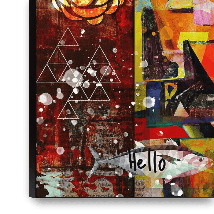 Dit moderne mixed-media portret van een vrouw is mijn kunstwerk dat de aandacht trekt door de overvloed aan kleur, textuur en details. Ik heb veel tijd en moeite gestoken in het creëren van dit unieke stuk.