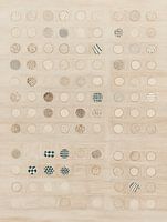 Modern patroon van kleine cirkels, Japandi stijl. Japandi is een mix van Japanse en Scandinavische interieurstijl. Rustig en modern. Een bijzondere blikvanger voor je interieur. Ook mooi als behang!