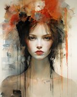 Modern portret: "Flower power". Dit werk is een echte blikvanger in je interieur. Laat het afdrukken op het materiaal en in de afmeting die jij wil zodat het helemaal naar jouw wens is.