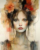 Modern portret: "Flower power". Dit werk is een echte blikvanger in je interieur. Laat het afdrukken op het materiaal en in de afmeting die jij wil zodat het helemaal naar jouw wens is.