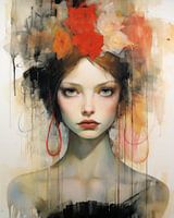 Modern portret: "Flower power". Dit werk is een echte blikvanger in je interieur. Laat het afdrukken op het materiaal en in de afmeting die jij wil zodat het helemaal naar jouw wens is.