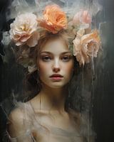 Modern portret "Romantisch in roze". Bijzonder portret, dit is een echte blikvanger aan je muur! Mooi in groot formaat en verkrijgbaar op elk gewenst materiaal.